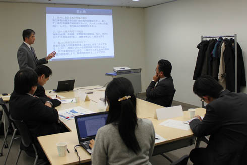 「洋上風力発電プロジェクトにおける漁業協調のあり方の検討」というテーマで、海洋産業研究会の中原常務理事と塩原主席研究員・研究部長補佐からお話いただいた。